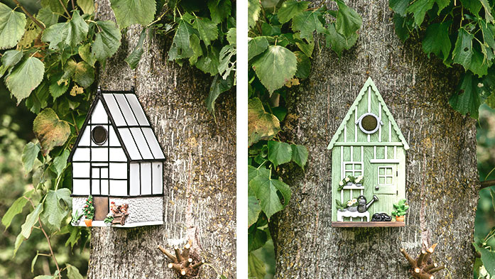 Auch Nistkästen in Form eines Häuschens sind sehr beliebt. In unserem Sortiment haben wir Nistkästen mit Spitzdach aus Holz oder aus Polyresin. Die Häuschen aus Polyresin sind hübsch verziert und erhältlich als Bauernhof, Gartenhaus, Gewächshaus oder Kuckucksuhr. Wer den Nistkasten lieber selbst baut, kann mit dem Bastlerset selbst an die Arbeit gehen.